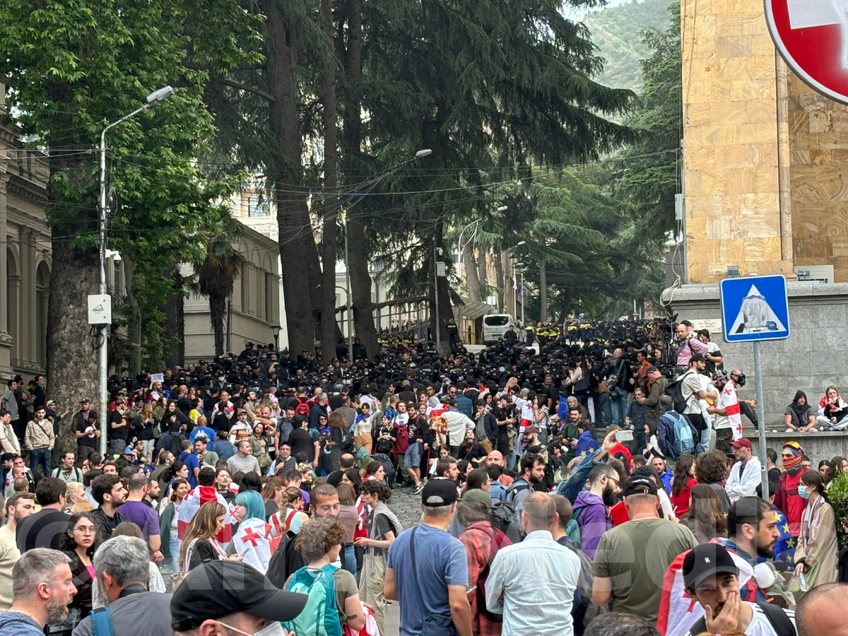 Վրաստանի խորհրդարանի շենքի հետնամուտքի առջև կանգնած քաղաքացիներին, որ առավոտից բողոքում էին «գործակալների մասին» օրենքի դեմ, իրավապահները ստիպեցին լքել այդ տարածքը։ Ցուցարարներին Չիտաձեի փողոցով տարան դեպի խորհրդարանի դիմացի հատված, որպեսզի քիչ առաջ աղմկահարույց օրենքի ընդունմանը կողմ քվեարկած «Վրացական երազանքի» պատգամավորները դուրս գան խորհրդարանի շենքից։