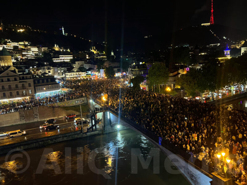 Երեկոյան ժամը իննից, տասնյակ հազարավոր քաղաքացիներ հավաքվել էին Թբիլիսիի Եվրոպայի հրապարակում՝ ընդդեմ «Վրացական երազանքի» կողմից երկրորդ ընթերցմամբ ընդունված «գործակալների օրենքի»։ Տեղում աշխատում էր «Ալիք Մեդիա Վրաստան»-ի նկարահանող խումբը։