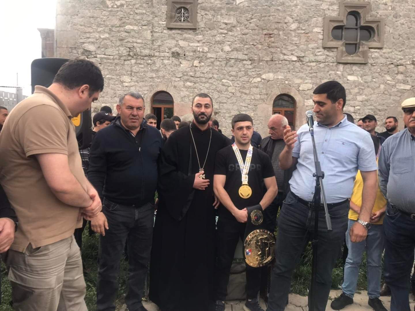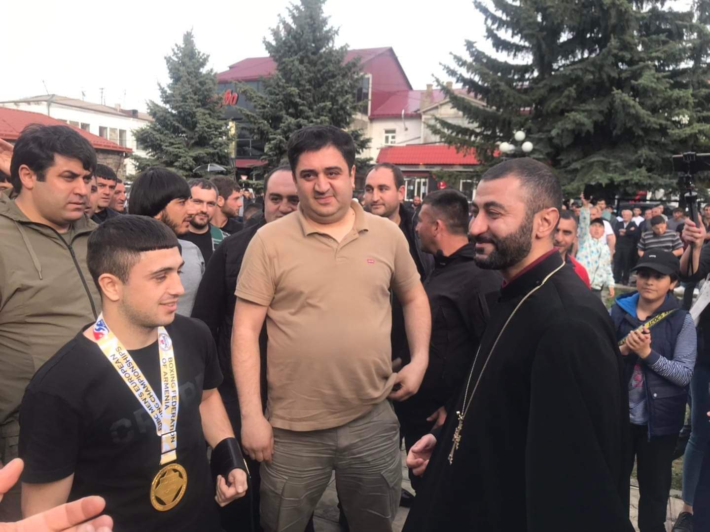 Բռնցքամարտիկին դիմավորելու համար Ախալքալաքի Սուրբ Խաչ եկեղեցու բակ էին շտապել բազմաթիվ քաղաքացիներ, Տեղական ինքնակառավարման մարմինների ներկայացուցիչներ, հոգևորականներ, տեղում էր նաև շաբաթներ առաջ Բուլղարիայում Բռնցքամարտի Եվրոպայի երիտասարդների առաջնությունում հաղթած ախալքալաքցի մարզիկը՝ Գոռ Այվազյանը։